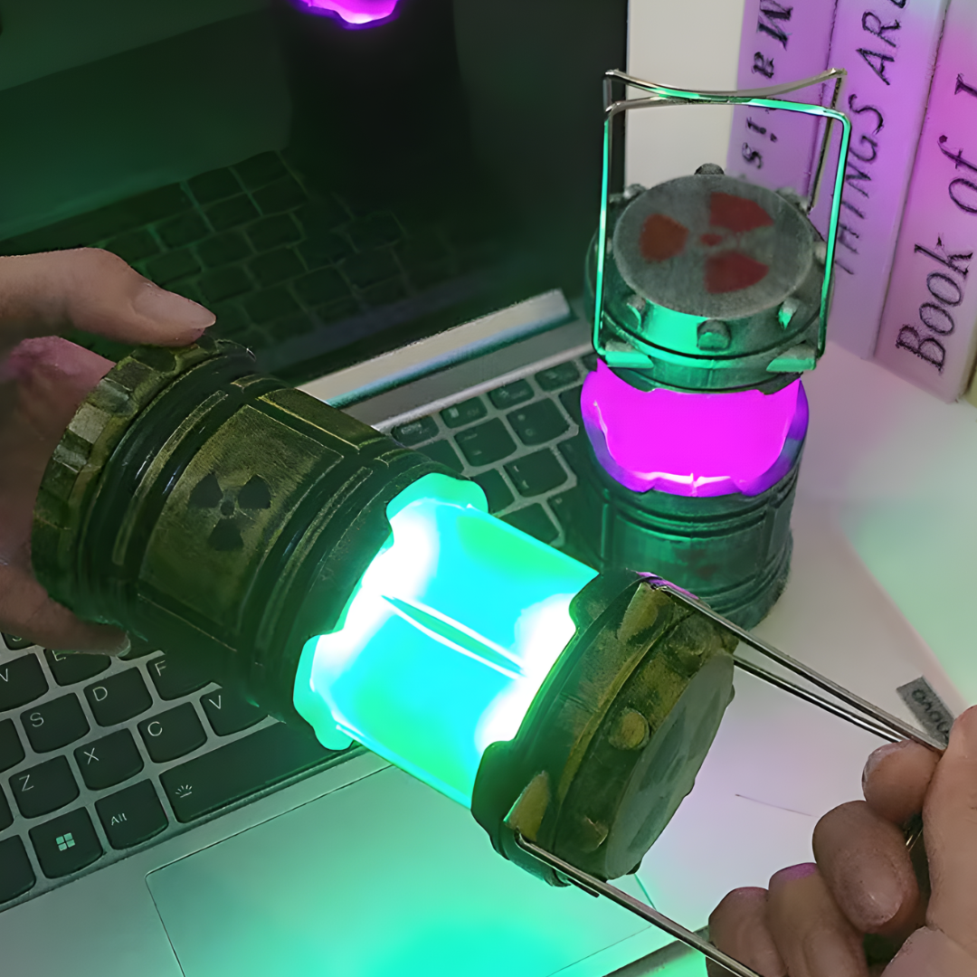 Inspirada en reactores de energía futuristas, la lámpara de camping Energy Core combina la estética de ciencia ficción con una iluminación práctica para exteriores. Su acabado metálico envejecido y el diseño con símbolo de energía la hacen parecer un núcleo de energía sellado de otro mundo. Simplemente levanta el cuerpo para desplegar la linterna y liberar un resplandor suave. Disponible en dos versiones—Luz Verde y Luz Púrpura—es perfecta para acampar, iluminación ambiental o como pieza destacada para tu configuración.