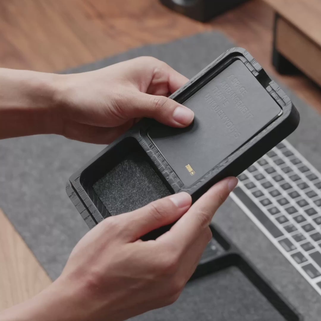 Il vassoio divisorio integrato mantiene i tuoi oggetti essenziali ordinatamente separati e facili da trovare. La cosa migliore è che è completamente rimovibile: puoi toglierlo per usarlo sulla scrivania o riorganizzare il tuo spazio di archiviazione ogni volta che ne hai bisogno. Questa flessibilità lo rende perfetto per cancelleria, accessori tecnologici o strumenti di uso quotidiano.