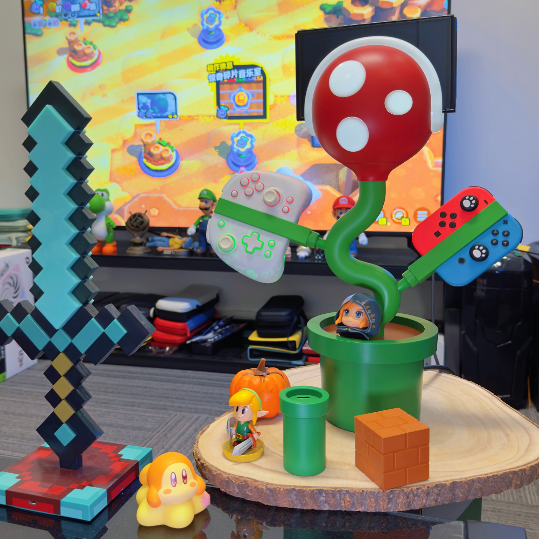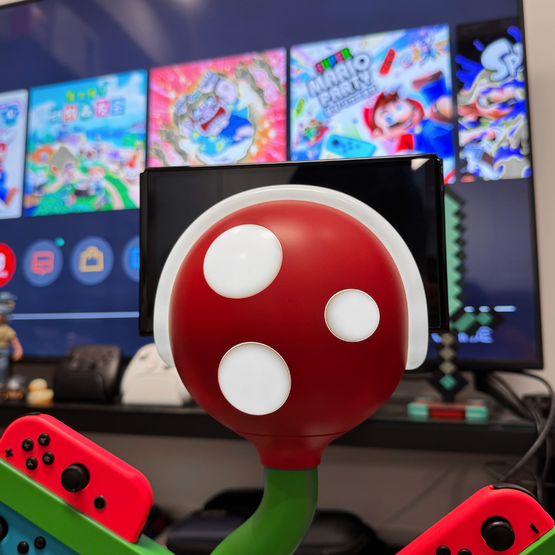 De Switch Chomp Flower Dock Stand combineert speels ontwerp met krachtige functionaliteit. De bloemvormige kaken houden je console stevig vast, terwijl de "armen" controllers ondersteunen—waardoor plezier en bruikbaarheid samenkomen.